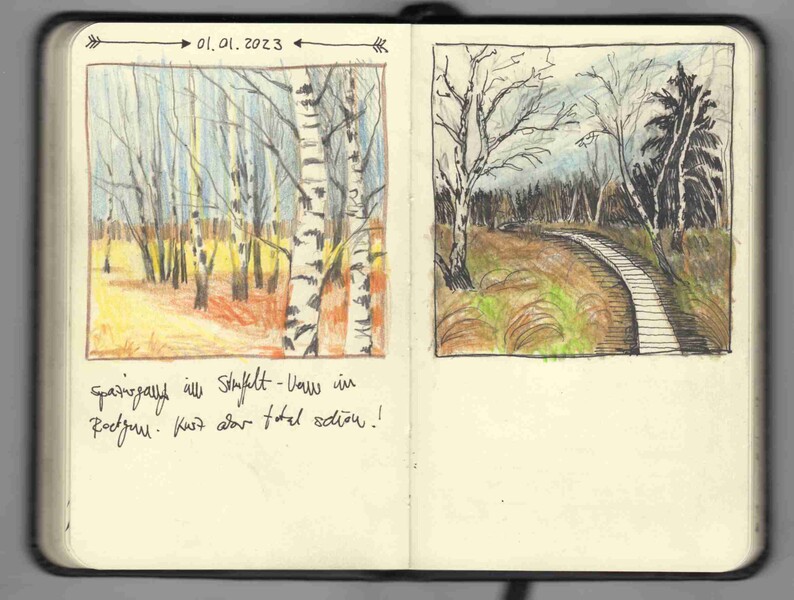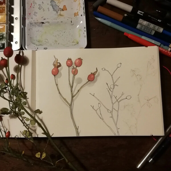 Beispiele meiner Naturstudien. Ich habe eigentlich immer ein Skizzenbuch bei mir, und wann immer es Zeit und Umstände erlauben, notiere ich, was mir gerade auffällt.