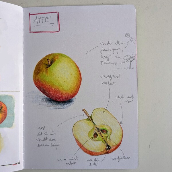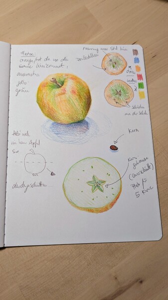 "Beschreibe einen Apfel für jemandem, der noch nie einen Apfel selbst gesehen hat."